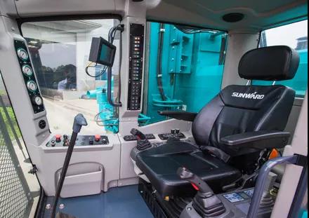 4.人文關懷,安全保障。司機室裝有冷暖空調、正壓系統、新風系統等,讓操作手遠離職業病傷害,此外,鉆機上還安裝了急停按鈕、滅火器等,充分保障使用者的人身安全。