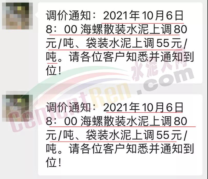 佛岡縣金峰水治有限公司通知因原材料市場價格變動,經公司開會決定從2021年10月7日0點起公司所有品牌(廣羊、英生、英堅、英從、英展、英晨、潖江、中源、眾通、英合、英詞)32.5R包裝水泥原價格基礎上上調50元/噸,散裝原價格基礎上上調80元/噸,所有品牌42.5水泥包裝原價格基礎上上調50元/噸。