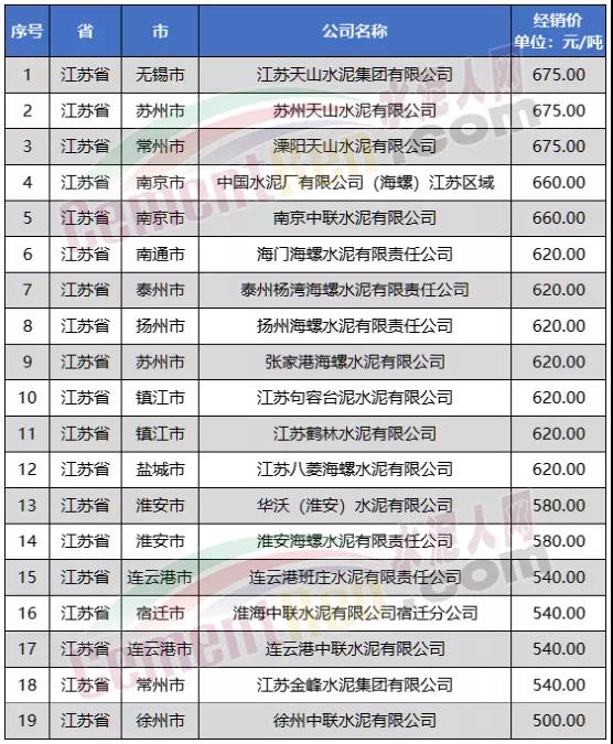 江蘇省8-10號恢復生產,水泥價格暫穩