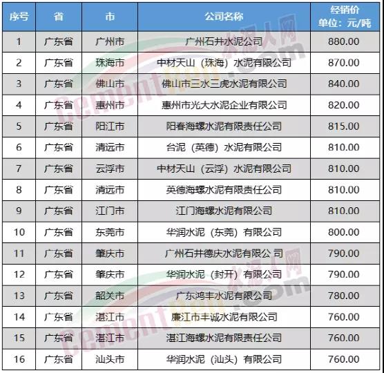 廣東區域水泥漲價繼續,包裝漲50-55元/噸,散裝漲60-80元/噸
