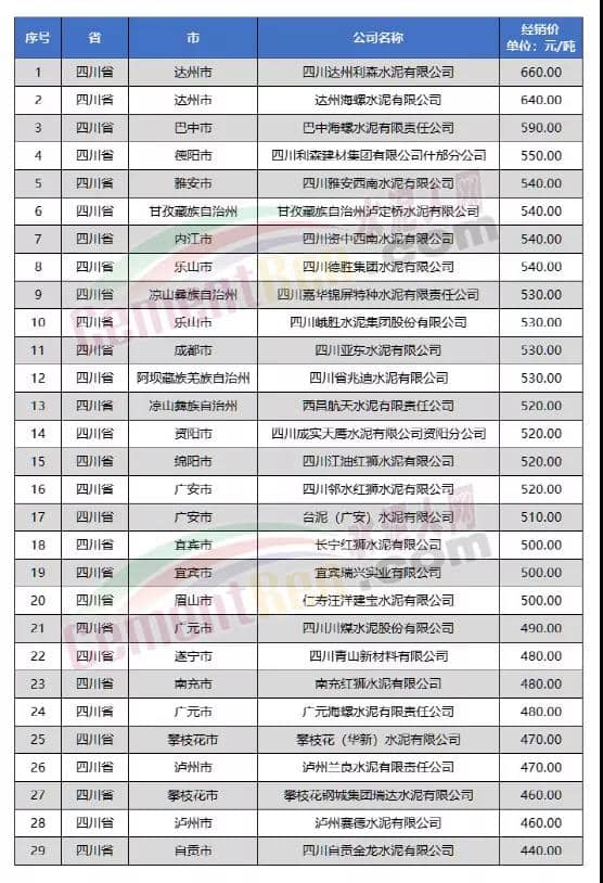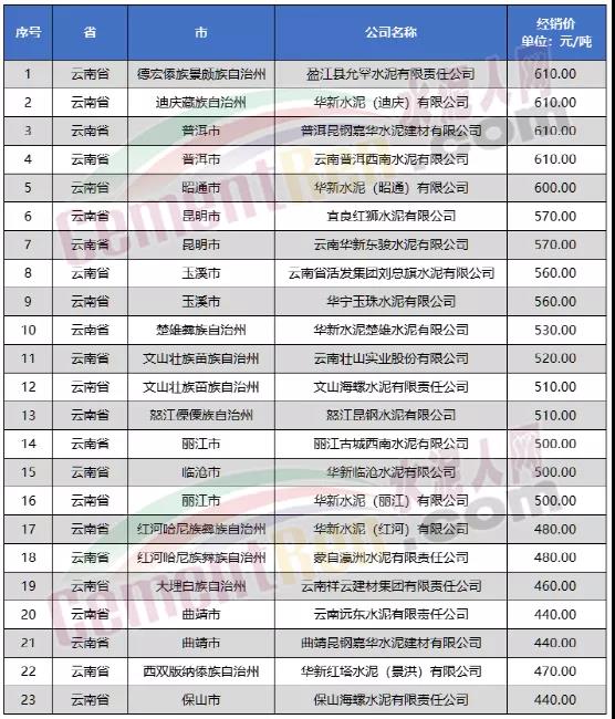 數據來源水泥人網信息中心人工采集,僅供參考,如與實際成交價格不符,請以實際成交為準。