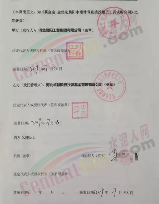據相關人士介紹,晨陽集團的民間融資是通過河北卓融股權投資基金管理有限公司完成的,根據認購合同顯示:發行人為河北晨陽工貿集團有限公司,受托管理人為河北卓融股權投資基金管理有限公司,備案登記場所為河北金融資產交易所有限責任公司。