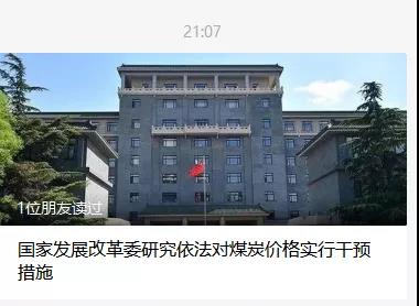 19日21:07分,《國家發(fā)展改革委研究依法對煤炭價格實行干預措施》提到發(fā)改委將研究依法對煤炭價格實行干預措施,促進煤炭價格回歸合理區(qū)間。