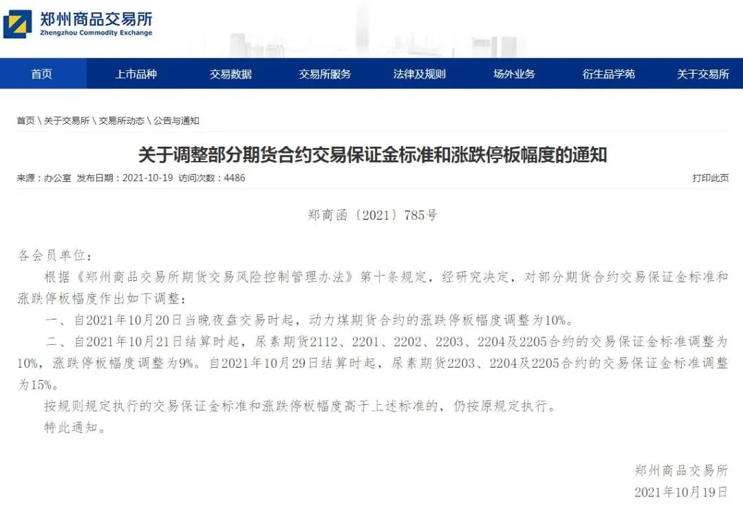 鄭州商品交易所關于調整部分期貨合約交易保證金標準和漲跌停板幅度的通知