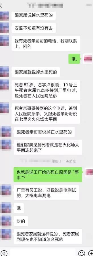 上述網友對水泥人網表示,工廠相關負責人對死者家屬陳述的死因是“掉水里死的”。