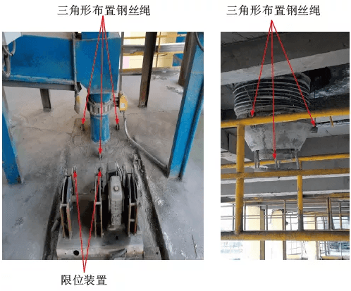 1.設備更新,將原散裝機料筒升降裝置全部拆除,保留裝載頭及下料筒,更換為新型高效無塵散裝機,升降結構是由3根鋼絲繩成三角形均勻布置在料筒外側,而且設計了升降限位保護裝置,保證了鋼絲繩使用壽命,解決繩孔冒灰問題,降低了職工勞動強度;