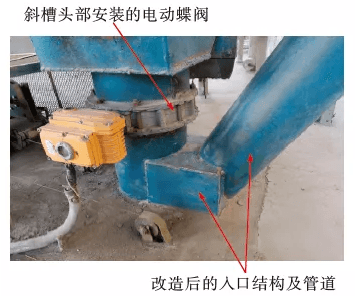 3.在斜槽頭部出料口位置加裝電動蝶閥,裝車完成后關閉電動蝶閥,封堵了斜槽內預留物料及收塵器內物料,徹底解決了下料口漏灰問題;