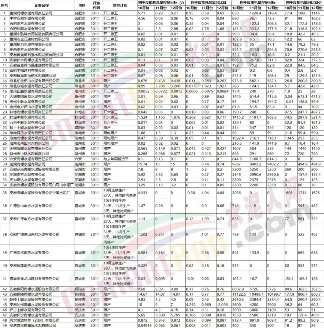 水泥人網注意到,通知文件附件各市“兩高”重點企業2021年內用能(電)管控計劃名單中包括海螺水泥、南方水泥、中材水泥、天瑞水泥、上峰水泥、磊達水泥等近百家水泥及混凝土生產企業。