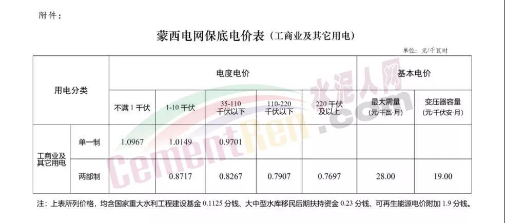 內蒙古發改委提出《關于明確蒙西地區電力市場交易用戶保底電價的通知》中的保底電價比原有電價上浮了80%。蒙西的新保底電價如下表所示: