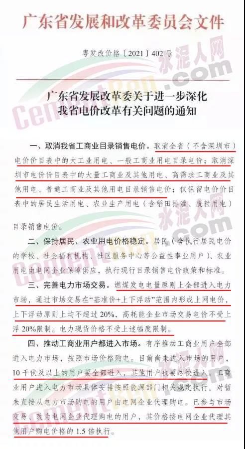 廣東省發改委印發(粵發改價格[2021)402號)文件,廣東省內所有工商業用電都進入市場了,電價漲幅接近20%。已參與市場交易、改為電網企業代理購電的用戶,其價格按電網企業代理其他用戶購電價的的1.5倍執行。