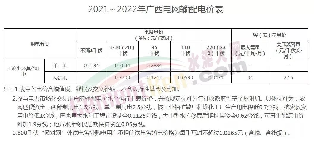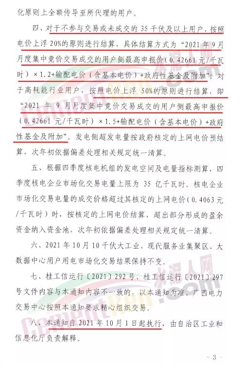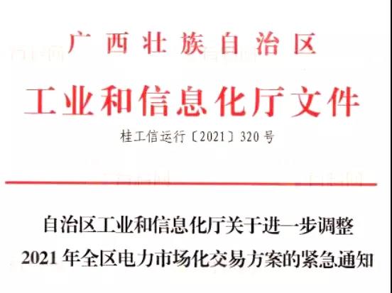 廣西發布《自治區工業和信息化廳關于進一步調整2021年全區電力市場化交易方案的緊急通知》,在緊急通知中,高耗能企業電價直接上浮50%進行結算。工商業及其他用電,執行《2021-2022廣西電網輸配電價表》。