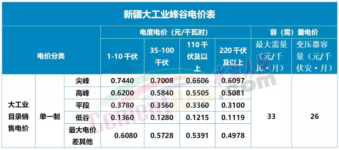 新疆峰谷電價差最大可達0.6元/kWh以上。尖峰時段用電價格在峰段電價基礎上每千瓦時上浮20%。峰谷電價標準暫按現行規定執行。分時電價機制自2022年1月1日起執行。