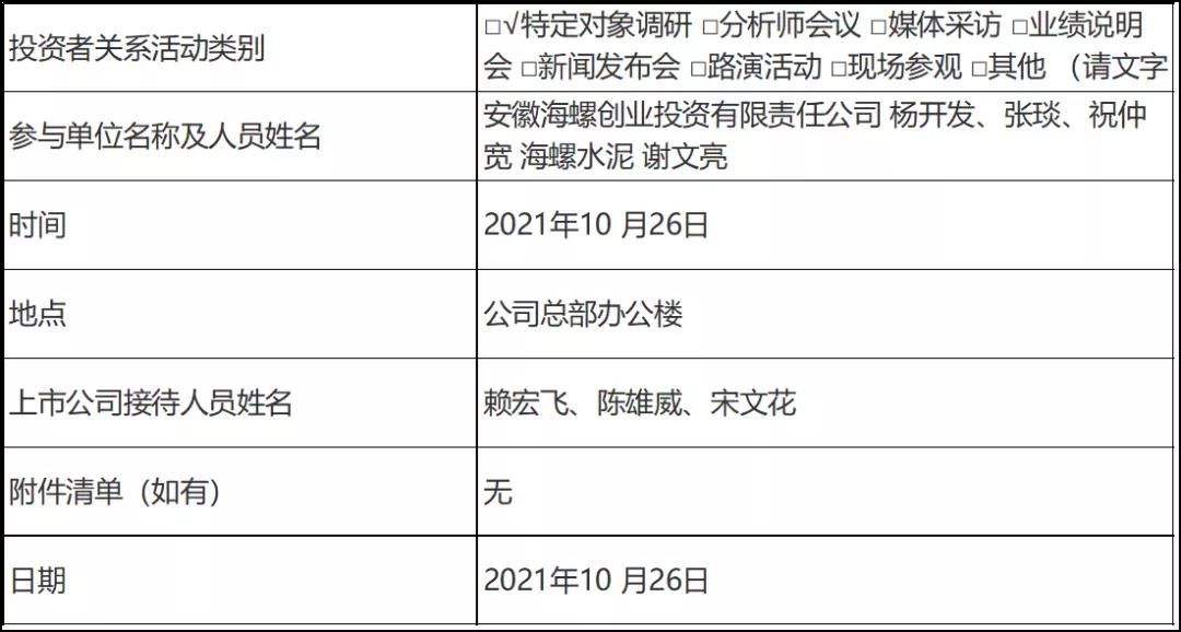塔牌集團獲海螺水泥、海螺創業投資調研