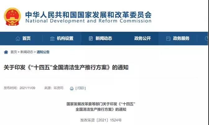 2021年11月9日,十部門重磅發聲!經國務院同意,國家發展改革委聯合生態環境部、工業和信息化部、科技部、財政部、住房城鄉建設部、交通運輸部、農業農村部、商務部、市場監管總局印發《“十四五”全國清潔生產推行方案》(發改環資〔2021〕1524號),對水泥等行業清潔生產提出要求:完成8.5億噸水泥熟料清潔生產改造。