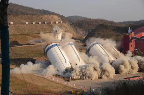 南京中聯5座骨料庫拆除現場:30秒爆破,干凈利索!