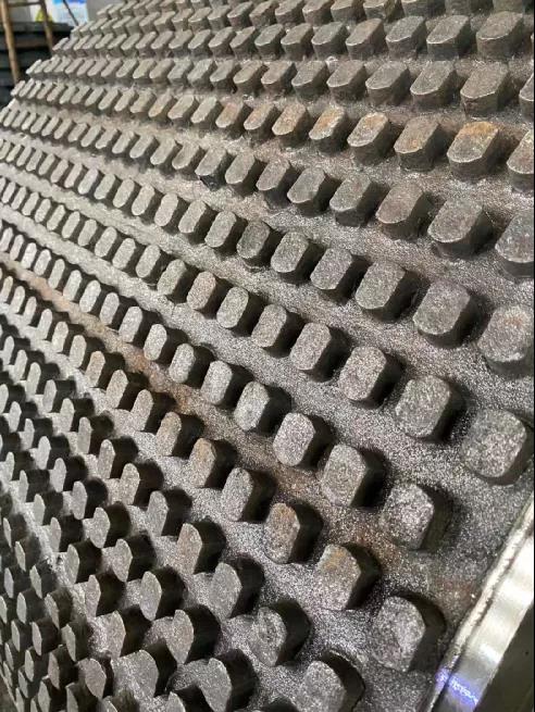 7、增加產(chǎn)量,目前采用的方格堆焊(傳統(tǒng)為網(wǎng)紋)產(chǎn)量同比增加5%左右、減少停臺時間,節(jié)約了維修成本,又增加了產(chǎn)量真正達(dá)到了降本節(jié)能之目的;
