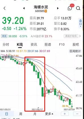 今年以來海螺水泥股價一直“萎靡不振”。自從去年7月份股價到63.56元見頂后,便步入了一個標準的下跌通道,今年6月份更是加速下跌出現了“八連陰”。8月30日,海螺水泥收盤下跌4.91%,又來了個6連陰。
