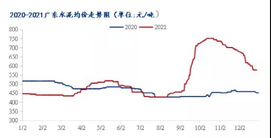 剛剛過去的2021年內廣東區域P.O42.5包裝水泥曾出現過1000元/噸的市場價格。這與當地市場限電限產,短期內出現的供不應求有關。