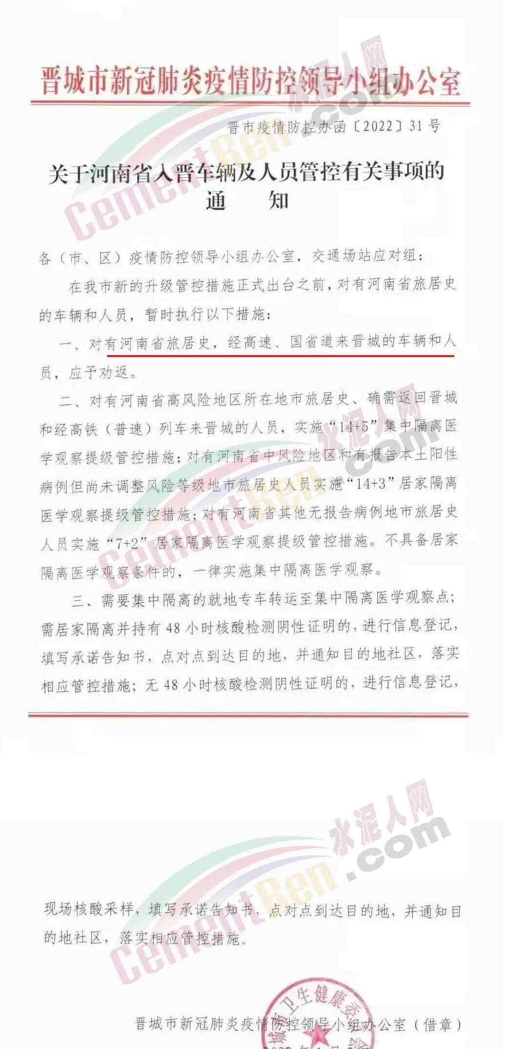 晉城市疫情防控辦發(fā)布從嚴(yán)從緊升級(jí)管控措施。禁止河南省來(lái)往晉城的縣鄉(xiāng)村級(jí)道路通行。勸返有河南省旅居史,經(jīng)高速、國(guó)省道和高鐵(普速)列車來(lái)晉城的外省車輛及人員。熔斷河南省往返晉城的貨運(yùn)物流、冷鏈物流、公路客運(yùn)(包括出租車、網(wǎng)約車、順風(fēng)車、團(tuán)隊(duì)包車等)業(yè)務(wù)。