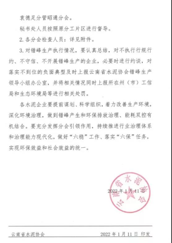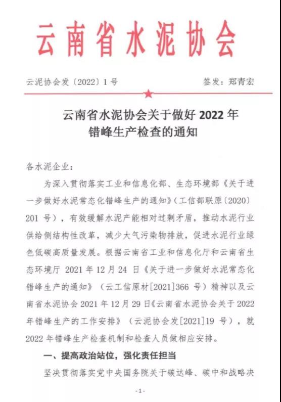 日前,云南省水泥協會發布《關于做好2022年錯峰生產檢查的通知》稱,為深入貫徹做好水泥常態化錯峰生產,要求完善錯峰檢查機制,加大了檢查力度,落實責任,各片區分會建立錯峰生產聯絡機制。
