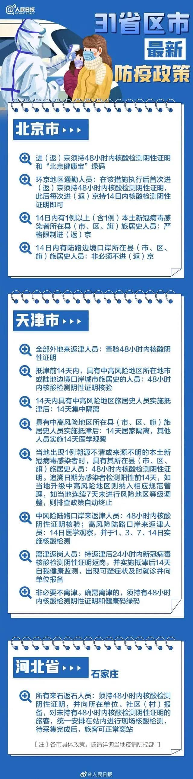 為進一步提早發現和管控疫情風險,在進返京須持48小時內核酸檢測陰性證明和“北京健康寶”綠碼的基礎上,自2022年1月22日零時起至3月底,進返京人員在抵京后72小時內需進行一次核酸檢測(通勤人員按照現有政策規定繼續執行)。