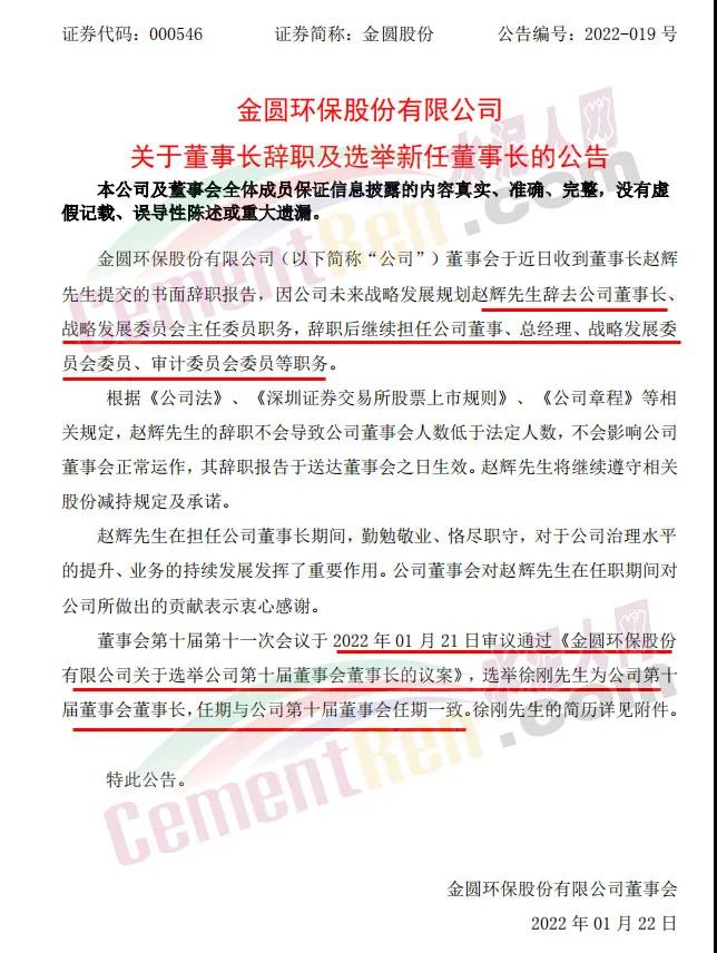 公告顯示,金圓股份董事會(huì)第十屆第十一次會(huì)議于1月21日選舉徐剛為公司第十屆董事會(huì)董事長,任期與公司第十屆董事會(huì)任期一致。