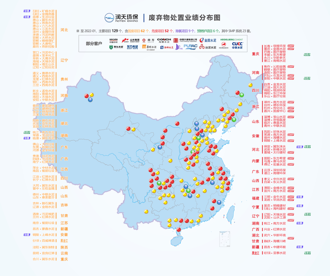 潤天環保目前已成為中國建材、海螺水泥、金隅冀東、紅獅水泥、臺灣水泥、亞洲水泥、金圓水泥 等各大水泥集團的供應商。