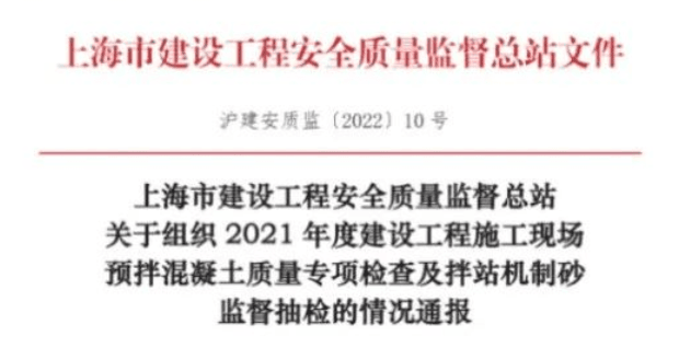 日前,上海市建設(shè)工程安全質(zhì)量監(jiān)督總站發(fā)布《關(guān)于組織2021年度建設(shè)工程施工現(xiàn)場(chǎng)預(yù)拌混凝土質(zhì)量專項(xiàng)檢查及拌站機(jī)制砂監(jiān)督抽檢的情況通報(bào)》稱,為防范工程質(zhì)量事故發(fā)生,加強(qiáng)混凝土質(zhì)量管控,規(guī)范見證取樣行為,針對(duì)目前機(jī)制砂來源不穩(wěn)定、質(zhì)量控制難度大的情況,上海市建設(shè)工程安全質(zhì)量監(jiān)督總站于2021年3月-12月,在全市范圍內(nèi)開展建設(shè)工程施工現(xiàn)場(chǎng)預(yù)拌混凝土質(zhì)量專項(xiàng)檢查及混凝土攪拌站機(jī)制砂(人工砂)監(jiān)督抽檢。