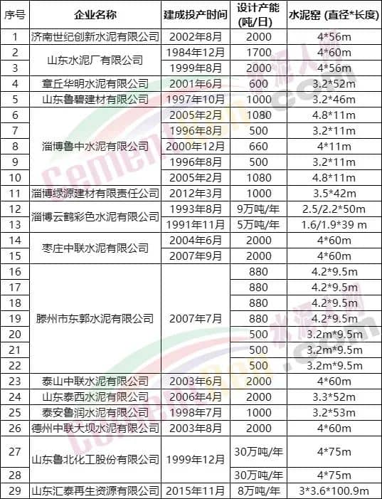 據(jù)山東省工信廳近期發(fā)布的熟料產(chǎn)能清單,2500t/d以及下產(chǎn)能清單共48條生產(chǎn)線,熟料產(chǎn)能合計(jì)2276.2萬噸/年,其中2000t/d以下熟料生產(chǎn)線共29條,合計(jì)產(chǎn)能926.2萬噸/年。