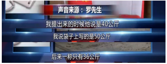湖南某建材店負責人表示,都是按包來計價的,不是稱重的。消費者則表示,提貨的時候店主稱“一包水泥是40公斤的,可是袋子上寫的是凈重50公斤,后來一稱只有36公斤”。