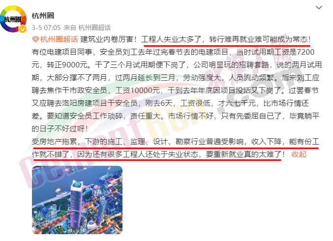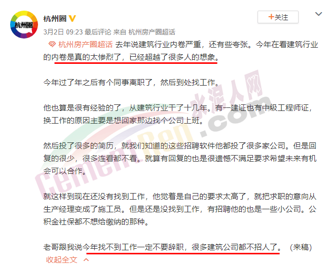 去年說建筑行業內卷嚴重,還有些夸張。今年在看建筑行業的內卷是真的太慘烈了,已經超越了很多人的想象。今年過了年之后有個同事離職了,然后到處找工作。