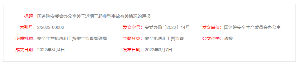 近期三起典型事故有關情況的通報