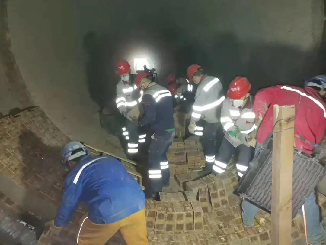 但在檢修后期,由于疫情的持續影響,造成外省筑爐施工人員始終無法到位,窯磚砌筑緩慢,嚴重影響到整體施工進度。但工期就是命令,為了保證按時點火生產。生產運行部門從部門負責人到車間主任到普通員工一起上陣與有限的筑爐人員協同配合,從清理廢舊窯磚、新磚砌筑、燃燒器精確定位到中控操作員組織協調精心操作,終于按時完成了砌筑工作。