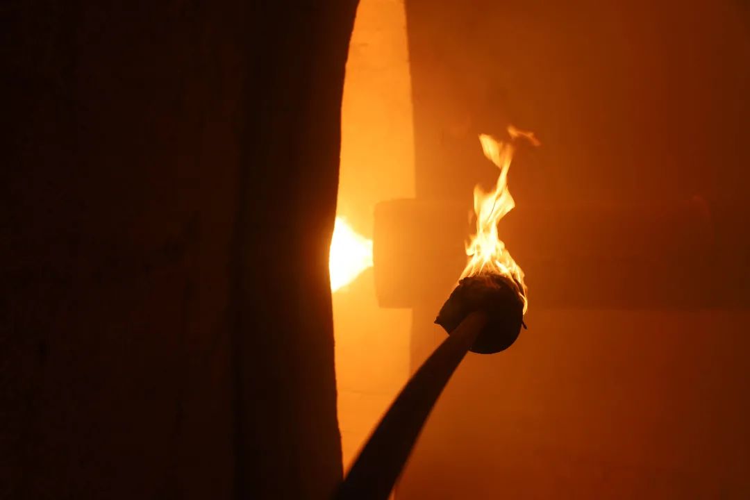 點火現場,總經理金毅點燃火把,現場人員依次接力傳遞到窯門,伴隨著噼里啪啦的鞭炮聲,點火油泵立即開啟,窯內頓時燃起熊熊大火,標志著水泥窯正式點火升溫,預示著公司今年生產經營各項工作紅紅火火。