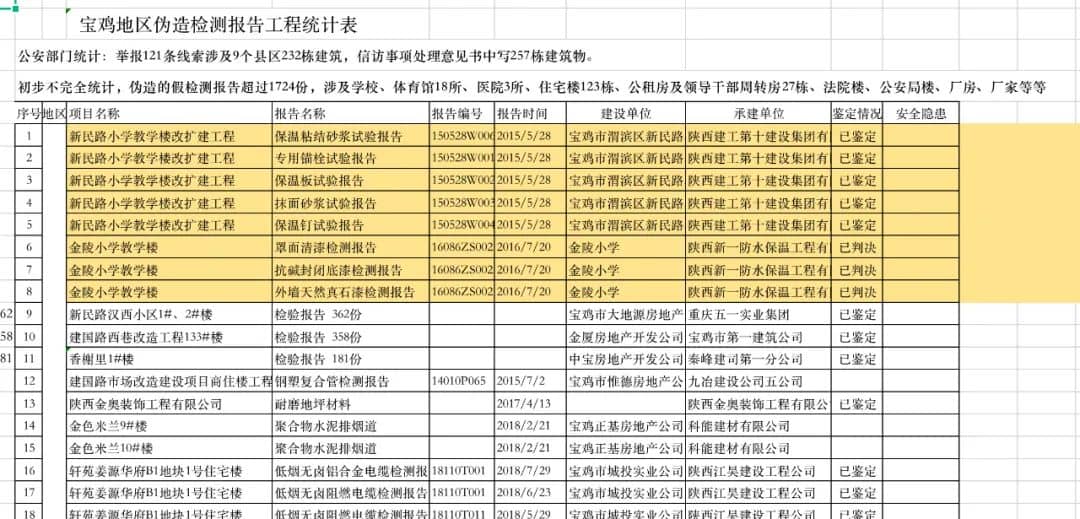 寶雞一千多份工程質(zhì)量檢測(cè)報(bào)告造假,涉及學(xué)校、體育館、醫(yī)院、住宅樓等