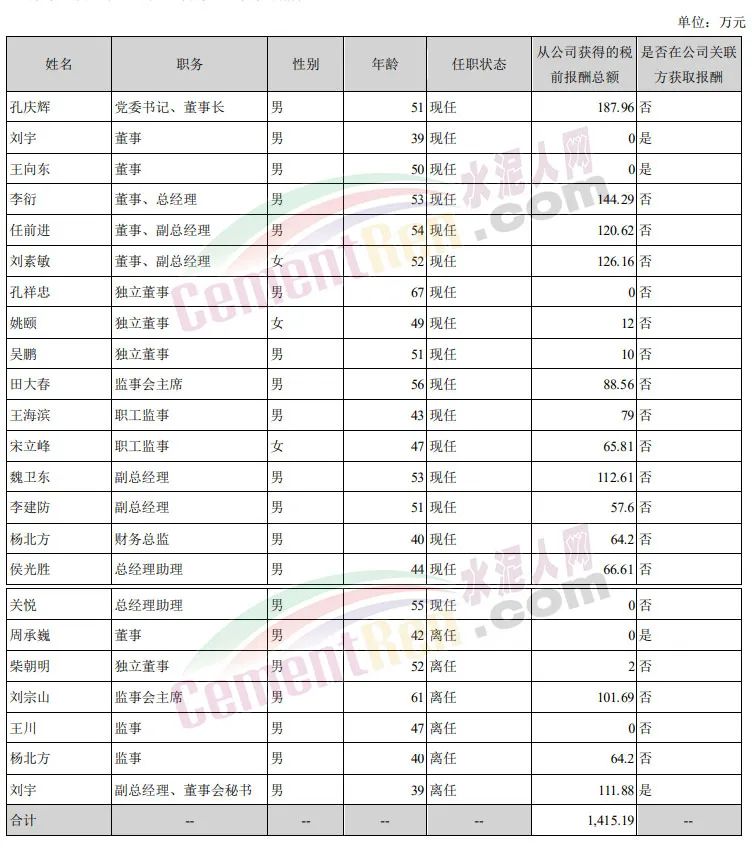 報(bào)告期內(nèi)董事、監(jiān)事和高級(jí)管理人員報(bào)酬情況顯示,董事長(zhǎng)孔慶輝從公司獲得的稅前報(bào)酬總額為187.96萬(wàn)元;總經(jīng)理李衍為144.29萬(wàn)元,任前進(jìn)、劉素敏、魏衛(wèi)東等三位副總經(jīng)理年薪分別為120.62萬(wàn)元、126.16萬(wàn)元和112.61萬(wàn)元,原董秘劉宇年薪111.8萬(wàn)元,監(jiān)事會(huì)主席劉宗山年薪101.69萬(wàn)元,共7位高管年薪過百萬(wàn)。