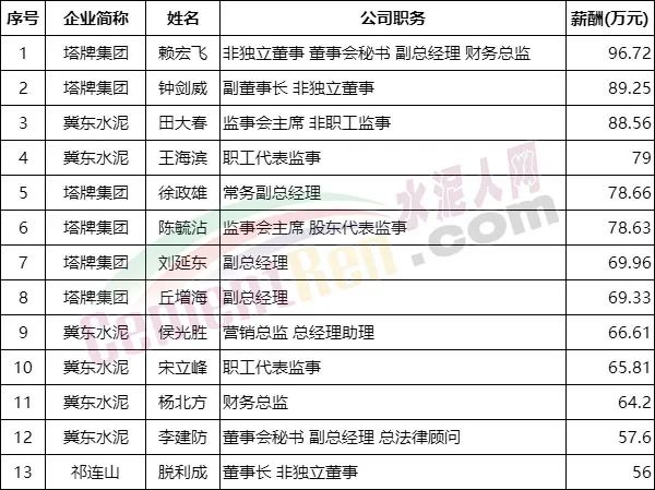日前,水泥行業(yè)冀東水泥、祁連山、塔牌集團(tuán)上市公司陸續(xù)發(fā)布2021年年度公告,公告中針對(duì)高管薪酬及員工工資均有提及。