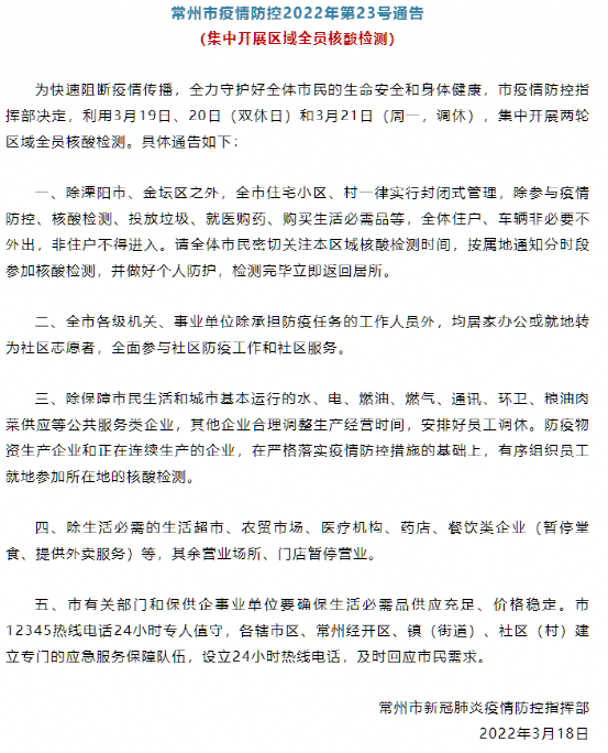 全市各機關企事業單位原則上停工停產,各大中小學、幼兒園停課,各類經營場所暫停營業。工業企業原則上實行封閉管理或員工在廠區附近實行集中管理。