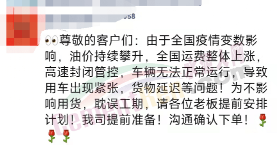 物流司機則表示,疫情封控區、管控區、防范區層層設卡,要繞行勢必提高運輸成本,再加上近期油價飆升,最近一周運輸成本上漲了30%,去蘇南送一趟貨就要賠上千元。
