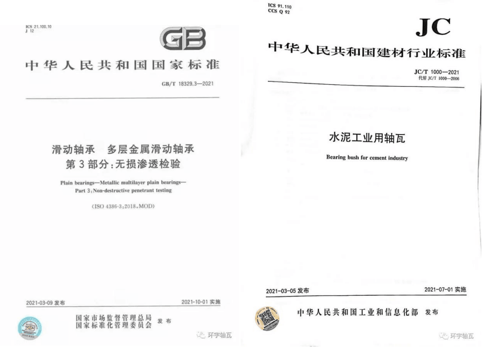 目前,由環(huán)宇軸瓦參與制定的三項滑動軸承國家標(biāo)準(zhǔn)已發(fā)布: