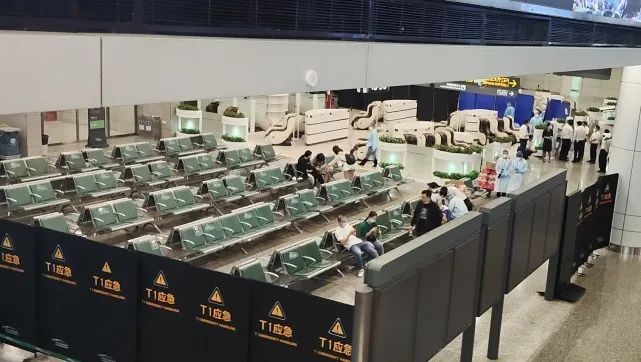 記者看到,目前東方航空將涉事航班的乘客家屬都安排在T1航站樓27-28號門區(qū)域,現(xiàn)場用應急牌遮擋,圍出“臨時接待區(qū)”,可以看到目前里面已經(jīng)有部分失事航班的乘客家屬在等候,部分工作人員在安撫家屬情緒。現(xiàn)場工作人員稱,只有確認是航班上乘客家屬的人員才可進入接待區(qū)。