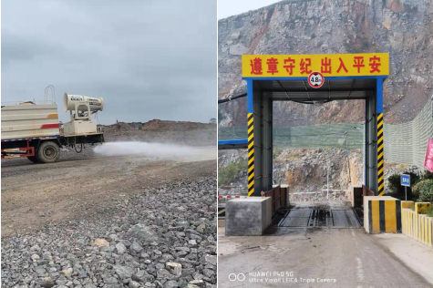 為大力改善職工的生活環境,華沃水泥購置4臺吸塵清掃灑水車、每天對礦區辦公生活主干道停車場等區域進行不間斷的清掃灑水;礦山道路安裝自動噴淋系統,實現道路和綠化區的自動噴淋;配置自動洗車臺,開采平臺安裝噴淋系統,采用濕法作業;配備霧炮車對場地裝車時進行噴水、噴霧防塵;運輸物料車安裝了自動伸縮篷布,進行物料全遮蓋;破碎站入料口為全封閉大鋼結構棚,場地及周圍全部進行了硬化和美化;卸料口安裝了大功率收塵器,棚內設置四道噴淋噴霧裝置,控制效果達到100%;對臨時不開采的平臺采用防塵網覆蓋,實現礦區無塵化。