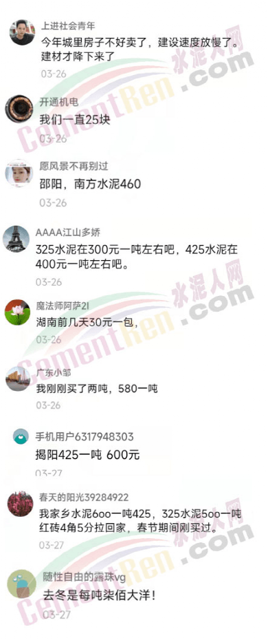 近期多有網友留言提到包裝水泥價格相對上年下半年低很多。現在的報價從15元-30元/包不等,大多數是在20元/包左右的。