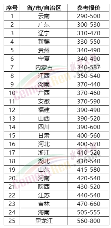 近期各區域P.O42.5散裝水泥參考報價