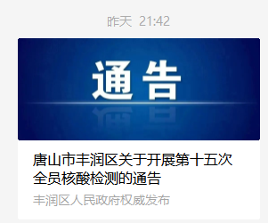 河北唐山豐潤(rùn)區(qū)政府4月1日晚21時(shí)42分發(fā)布通告稱(chēng),根據(jù)當(dāng)前疫情防控形勢(shì),定于2022年4月2日13點(diǎn),對(duì)豐潤(rùn)區(qū)域內(nèi)所有居民(含外來(lái)人員)開(kāi)展第十五次全員核酸檢測(cè)。
