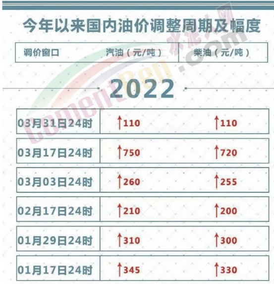 受國際原油持續(xù)上漲的影響,2022年國內(nèi)汽柴油價格達到八年以來的最高點。按照“10個工作日”油價調整的規(guī)律,3月31日24時將開始3月最后一次油價調整,完成2022年油價“第6次”上漲。