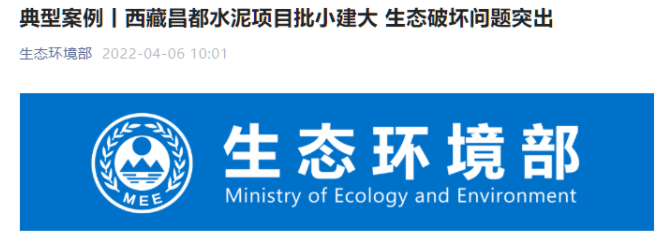 2022年3月,中央第四生態(tài)環(huán)境保護督察組督察西藏自治區(qū)發(fā)現(xiàn),昌都市水泥項目批小建大,生態(tài)破壞問題突出。