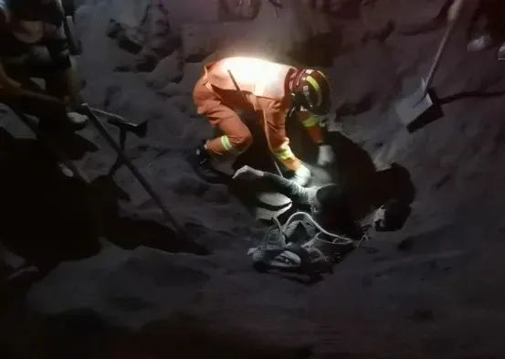 在現場,消防救援人員立即用鐵鍬工具,將沙子快速轉移外面,由于沙子比較松軟,同時防止使用鐵鍬很有可能會給被困人員造成二次傷害。消防救援人員在現場指揮,“先找木板把這兩邊保護著。”