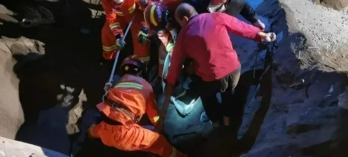 隨即,消防救援人員立即采取用手刨土的方式,一點一點地將被困男子周圍沙子清理掉,期間利用繩索拴在被困男子腰帶上,企圖將他拉上來,但是任憑救援人員聯同現場工人怎么拖拽始終難以脫離。
