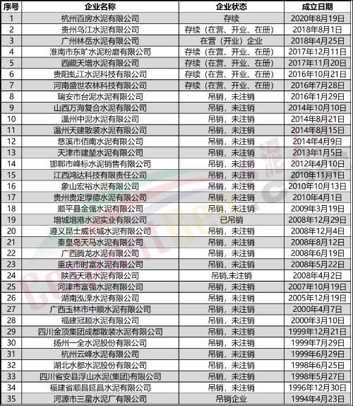 據水泥人網不完全統計,涉及行政處罰的99家水泥企業狀態均為存續、在營、開業、在冊企業,其中不乏海螺、冀東、華潤、紅獅、山水等水泥集團旗下企業。